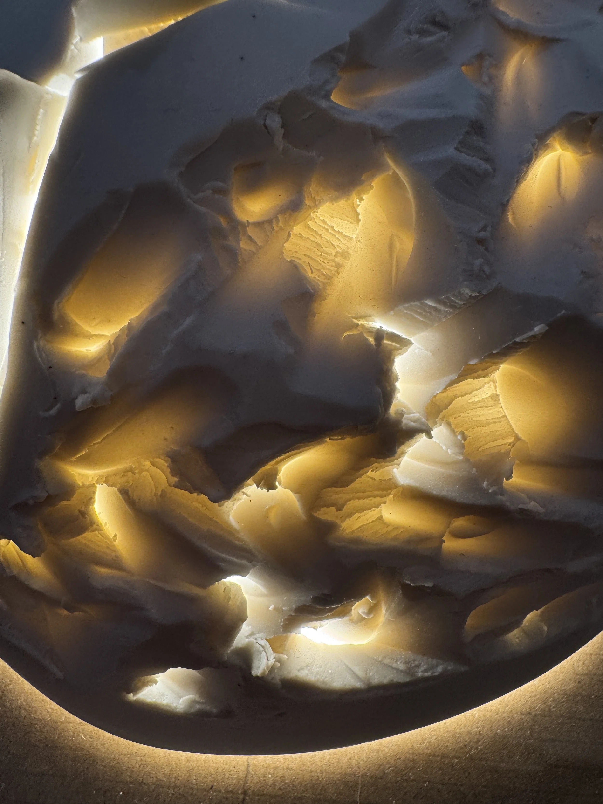 Not Yet inhabits that charged threshold. Each porcelain form is fragile yet resolute, illuminated from within yet visibly incomplete. They are vessels of tension—holding both weight and light. They acknowledge that we can feel sorrow and hope at the same time. We can witness what is broken while still preparing for what is possible.